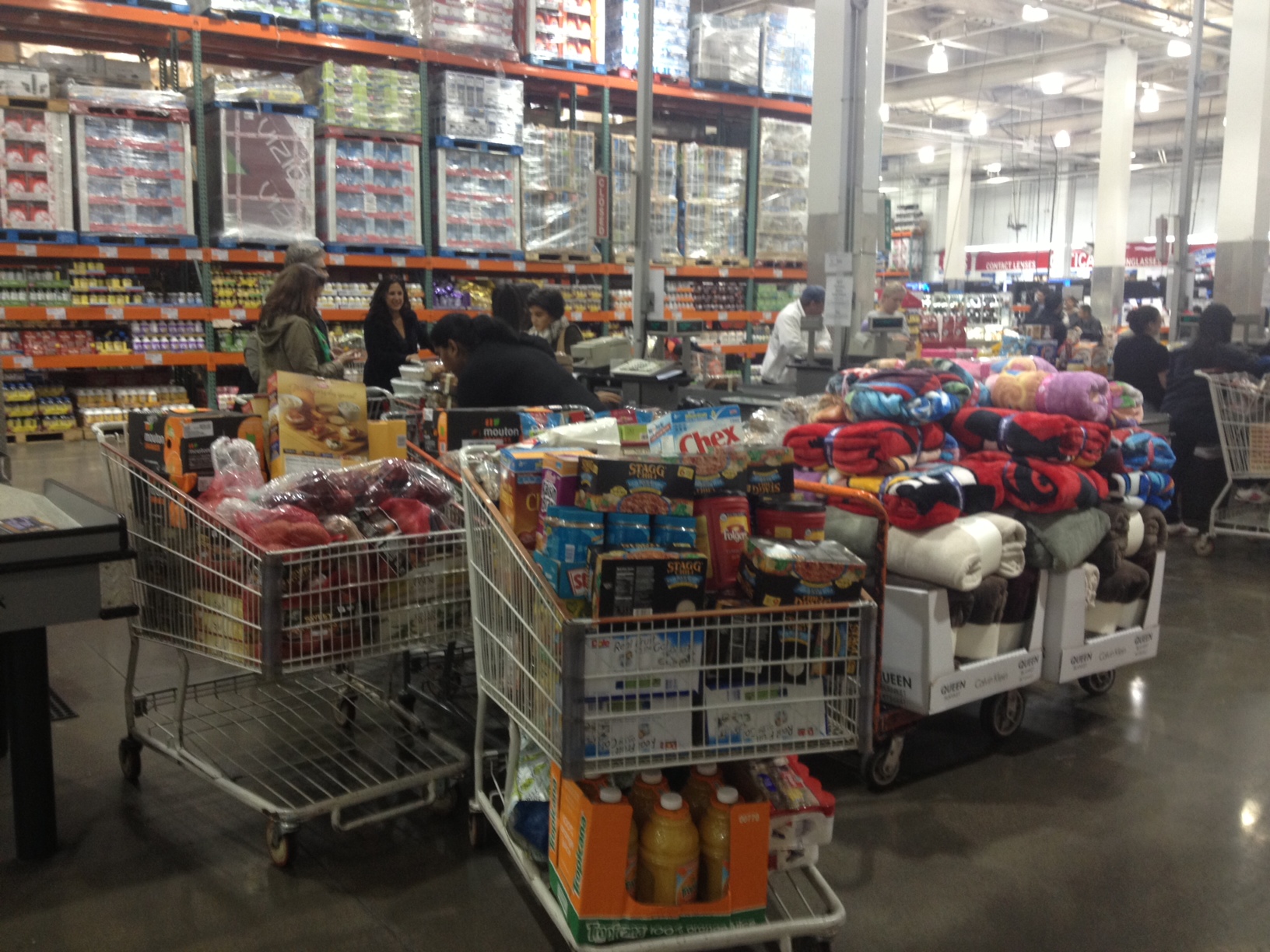 With only a couple of other volunteers (Josh, Gaby, Jessica, Kate and myself) we took a trip to Costco and bought 35 super warm blankets, tons of canned goods like: tuna, beans and chili, breads, peanut butters, milk, fresh fruit, coffee, potatoes, pastries and juice.